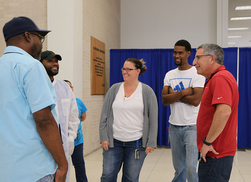 Dr. Klotman and ride-out Published September 13, 2017 at 864 × 629 in Ride-out team keeps College safe ← Previous Next → After the storm, Dr. Klotman thanks the team.