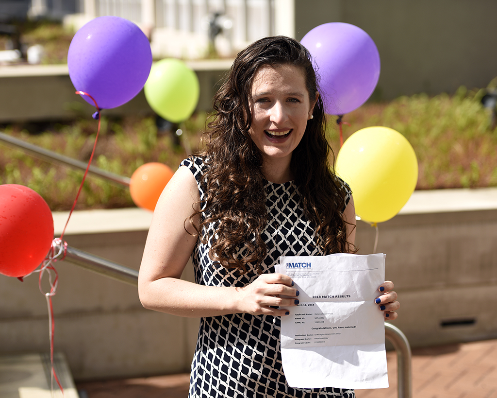 Geneva White Published April 2, 2018 at 1024 × 819 in Students meet their match, rain or shine! ← Previous Next → Geneva White, anesthesiology at the University of Michigan. Look for her to make a difference in global health!