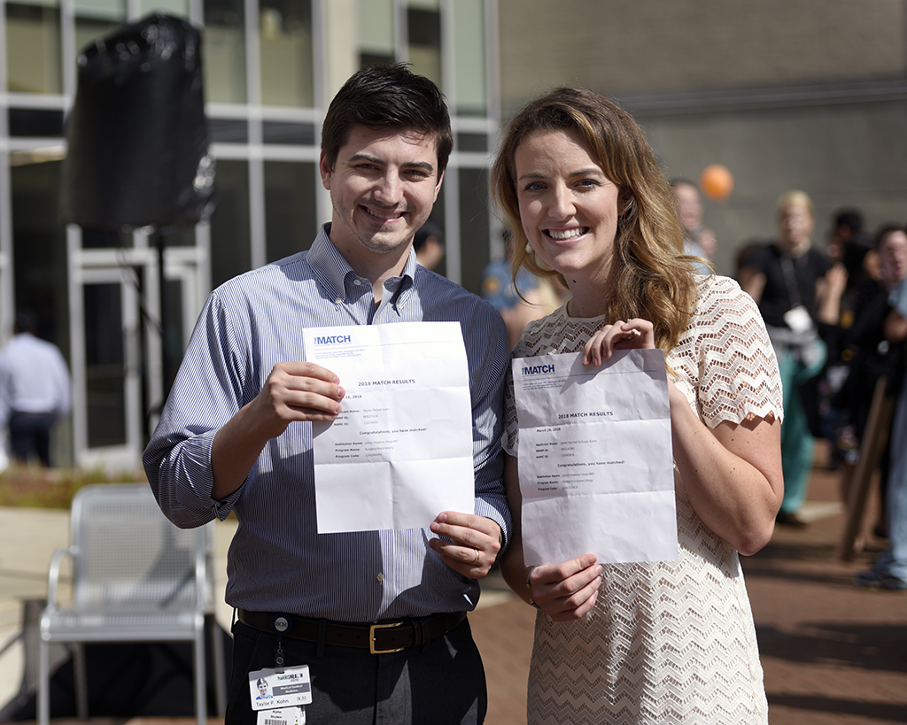 Taylor and Jaden Kohn Published April 2, 2018 at 1024 × 819 in Students meet their match, rain or shine! ← Previous Next → Taylor and Jaden Kohn will head to Johns Hopkins to pursue ob/gyn and urology, respectively.