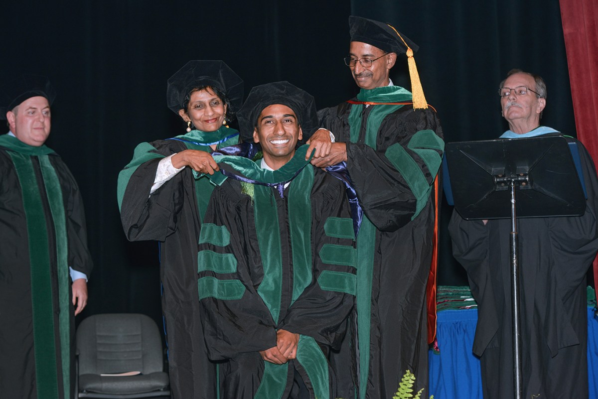 Commencement5 Published June 4, 2018 at 1366 × 912 in Service to community focus of 2018 Commencement ← Previous Next → Proud parents hooding their graduate.