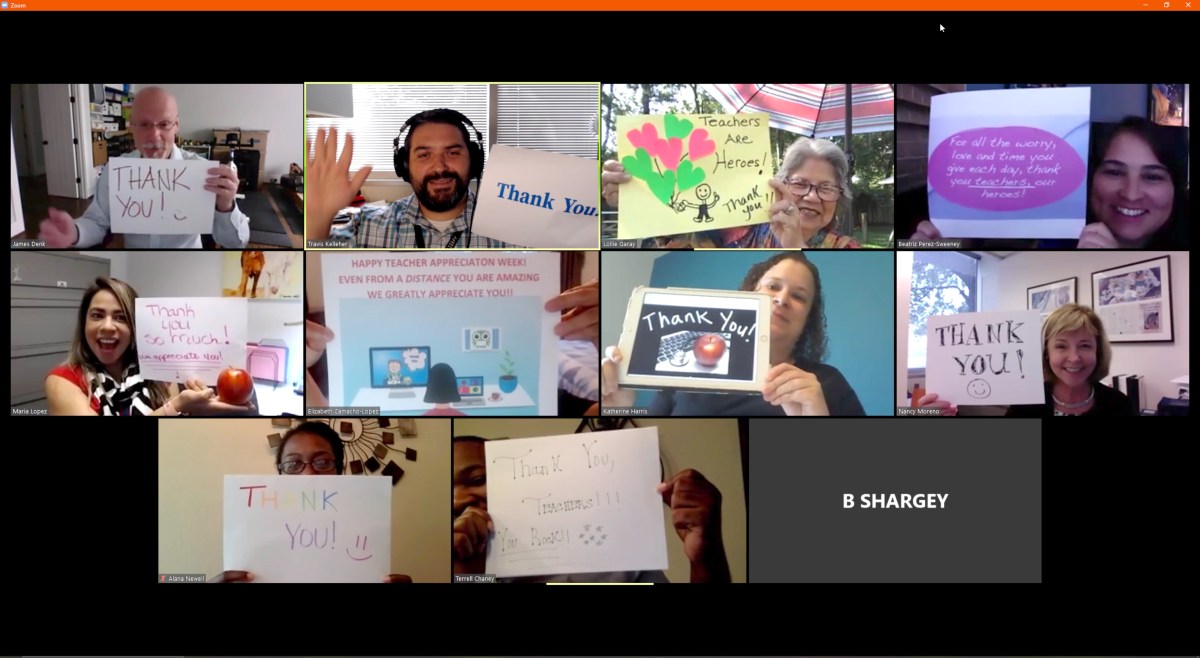 BCM-CEO-Teacher-Appreciation Published May 13, 2020 at 3840 × 2106 in Baylor COVID-19 Diaries ← Previous Next → Faculty and staff in Baylor’s Center for Educational Outreach “virtually” thank area teachers during Teacher Appreciation Week!