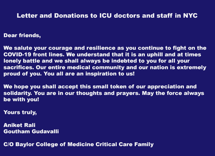 Critical Care donation letter Published April 9, 2020 at 720 × 521 in Baylor COVID-19 Diaries ← Previous Next → A ‘Thank You’ to New York.