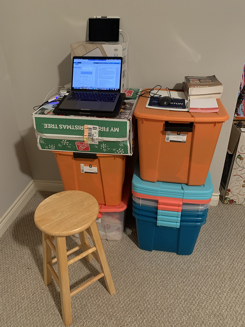 Ronald_Vilela_home office Published April 9, 2020 at 810 × 1080 in Baylor COVID-19 Diaries ← Previous Next → Dr. Ronald Vilela’s home office while his son uses his real office for school.