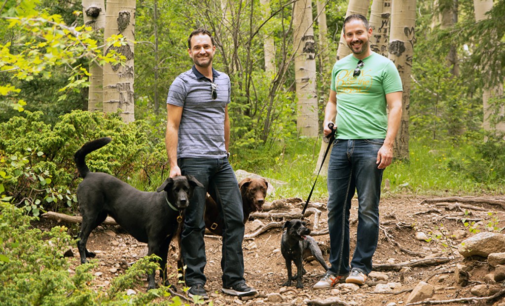 Seven years ago, Howard and his miniature schnauzer, Griffin, grew their family by two: Howard’s now husband, Kevin, and Kevin’s chocolate lab, Jake.