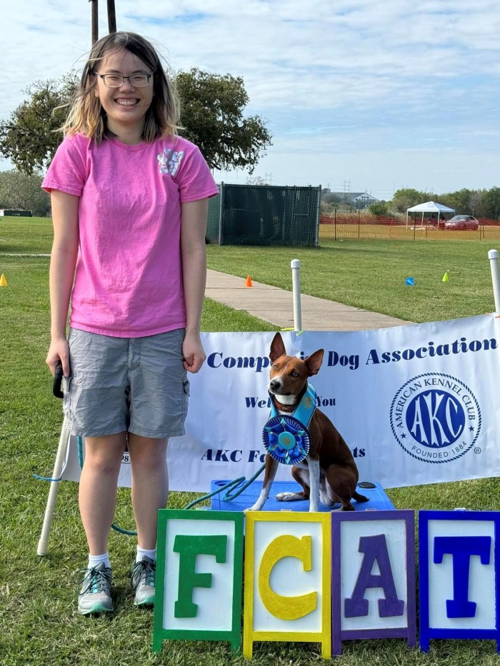 Emma was hooked. “Let’s do this again!” she said. So we signed her and Shazam! up for another weekend of Fast CAT, and then another and another after that. They quickly earned not only ribbons from these runs but also rosettes, which signify a new title. Eventually, our daughter and Shazam! reached the highest-level title, the FCAT title (now up to FCAT6) with multiple rosettes adorning her bedroom wall. She also became a registered AKC Junior Handler.