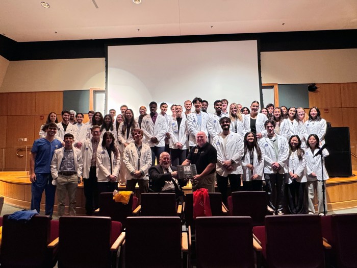 In Temple, medical students partnered with the United Way of Central Texas which connected them with five locations in town for their Day of Caring. On Oct. 3, Dr. Bobby Greenberg at Baylor Scott & White Health – Central Texas Region, delivered a lecture on what community services means to him. Greenberg presented a plaque with Matthew Carter’s photo to his father, Dr. Carter, to memorialize the annual day of service.