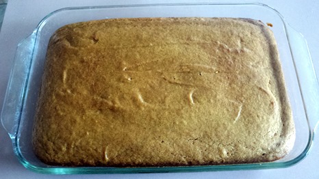 - Grease 9-x-13 pan and pour mixture into pan.