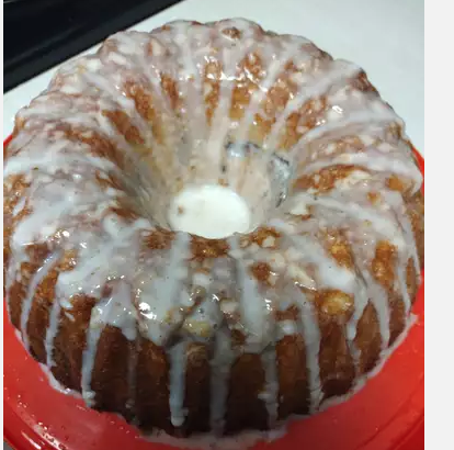 Tip: This recipe uses more eggs than most cake mixes call for. Use another lighter tasting oil if you have one on hand. Sour cream makes the cake moist and rich (it stays really moist, too). Pecans are traditional, but almonds or walnuts also work. Use whatever milk you have on hand. Cake mix is your choice (I use Duncan Hines Classic Butter Golden Cake Mix). Powder sugar is for the icing/glaze, and brown sugar is for the filling.